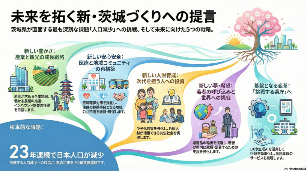 ■最終提言の概要:人口減少社会でも「幸せ」を感じられる茨城へ